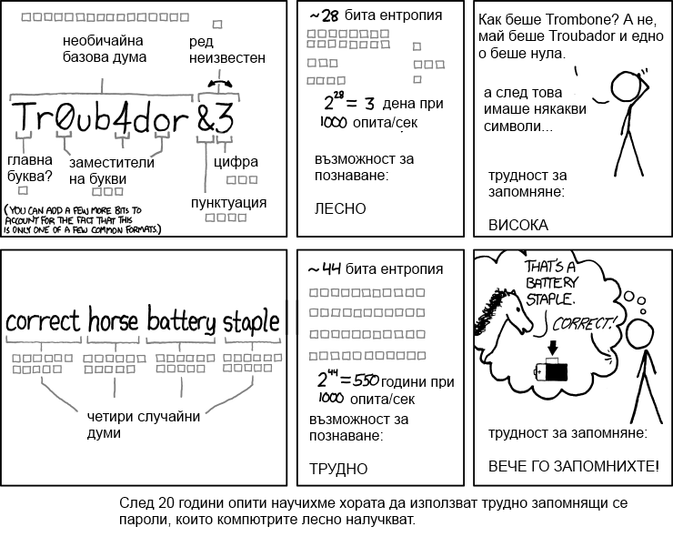 Трудност на паролата – Комикс hb Публикувана на декември 25, 2013 Публикувано в comic Няма коментари Tagged with password, strength Източник: xkcd If you have found a spelling error, please, notify us by selecting that text and pressing Ctrl+Enter.